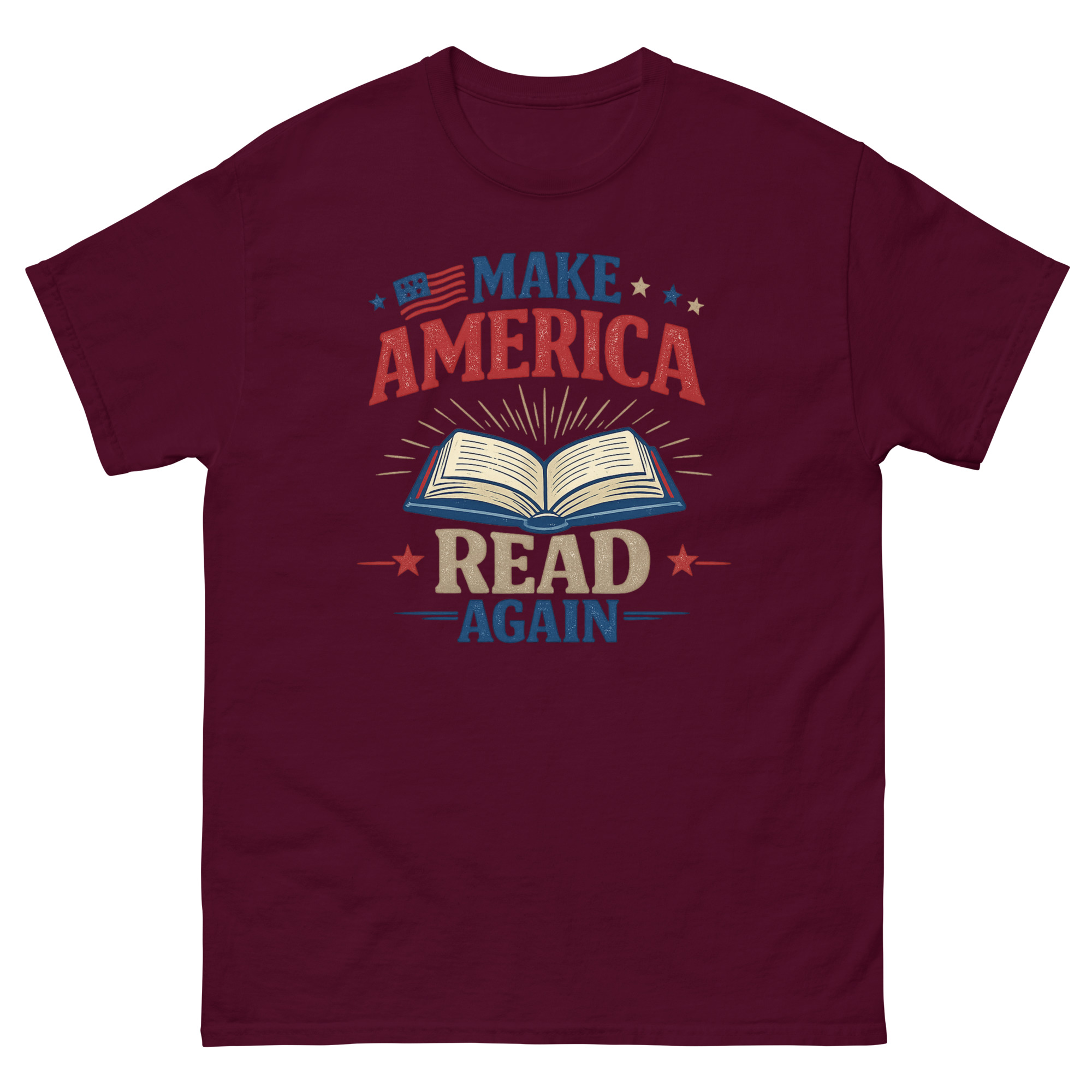 We created Make America Read Again Shirt design for people who see reading as a fundamental and powerful act. The idea was to take a well-known phrase and redirect its energy toward something universally positive: education and knowledge. Instead of a political statement, it’s a statement of values. The open book at the center, with its rays of light, is a simple, bold metaphor for the enlightenment that comes from books. The classic patriotic colors reinforce the idea that this is a form of intellectual patriotism.