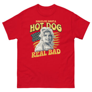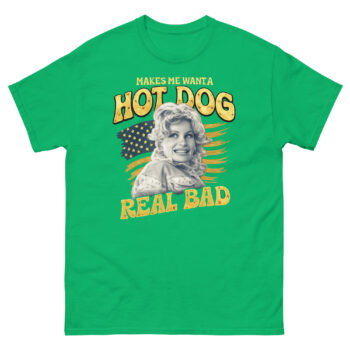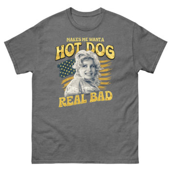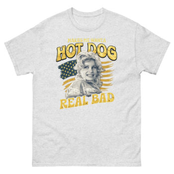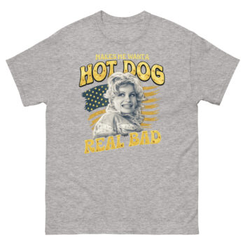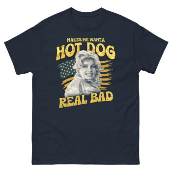 The phrase itself, printed in a perfectly faded yellow font, is the heart of the shirt. While it’s a playful nod to a well-loved pop culture moment, you don’t need to know the reference to get the vibe. Ultimately, it’s about embracing simple, joyful cravings with a wink. This Makes Me Want A Hot Dog Real Bad Shirt design philosophy means the tee works as a funny patriotic statement for July 4th, but also as a year-round piece of retro Americana. Whether you’re heading to a cookout, a concert, or just running errands, it’s a lighthearted way to show your style.