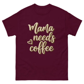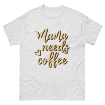 This “Mama Needs Coffee” t-shirt is a stylish and relatable choice for coffee-addicted moms. Featuring a modern script font and playful heart design, it’s a go-to tee for mornings, school runs, or coffee dates. Ideal as a gift for Mother’s Day, birthdays, or any mom who runs on caffeine.