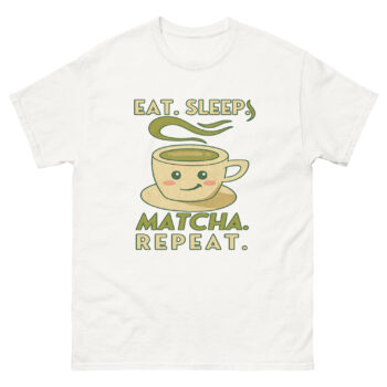 Bring your love for matcha to life with this Eat Sleep Matcha Repeat Tee – a playful and cozy shirt made for tea lovers. Featuring a smiling cup of matcha with a bold slogan, it blends humor and comfort in the perfect way. Whether you’re sipping your favorite green tea, heading to a café, or lounging at home, this tee is a fun conversation starter. It also makes a thoughtful gift for matcha lovers who can’t go a day without their green tea fix.