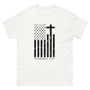 Memorial Day isn’t just another holiday—it’s a solemn moment to honor those who made the ultimate sacrifice. The Memorial Day distressed flag shirt isn’t just apparel; it’s a wearable tribute. With its monochrome American flag in a vertical layout, a bold cross replacing one stripe, and a cracked, worn effect, this shirt speaks volumes without saying too much.