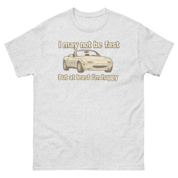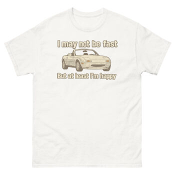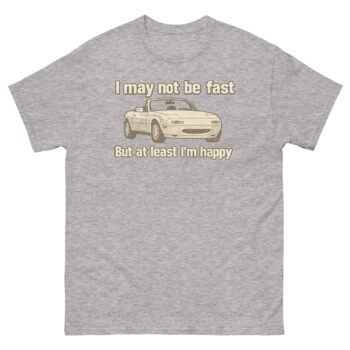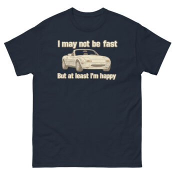 Celebrate your love for driving with this Miata Shirt – featuring the iconic roadster and the quote “I may not be fast, but at least I’m happy.” A must-have for MX-5 owners, JDM fans, and happy drivers who know the joy isn’t just about speed, it’s about pure fun behind the wheel. Perfect for car meets, gifts, or weekend drives.