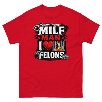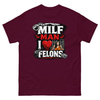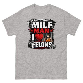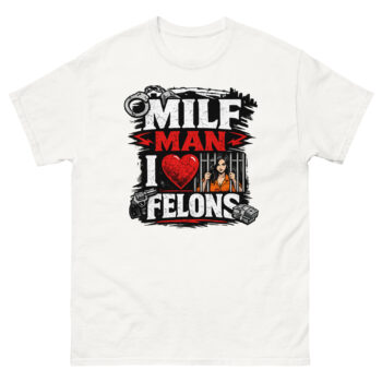 The Milf Man I Love Felons T Shirt is more than just clothing, it’s a statement piece for fans of rebellion fashion. Whether you’re into crime aesthetics or just want a funny, bold tee, this design delivers. Click to choose your size and own this piece of subversive streetwear today.