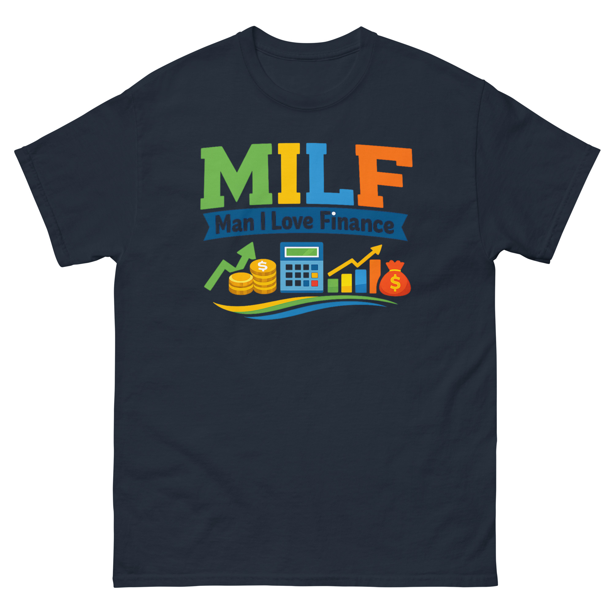 Meet the MILF Man I Love Finance T Shirt, a bold and witty tee for professionals who take their work seriously but not themselves. This unique design redefines a popular acronym with vibrant, colorful icons representing wealth, markets, and bookkeeping. It’s perfect for accountants, bankers, analysts, and any stock market enthusiast with a sharp sense of humor.