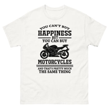 “You Can’t Buy Happiness, But You Can Buy Motorcycles” – The Ultimate Funny Rider T-Shirt for Bike Lovers