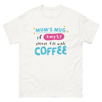 Let’s be honest—no mom has ever survived the school run, toddler tantrums, or teenage eye rolls without a steady supply of coffee. This mum’s mug if empty please fill with coffee funny shirt isn’t just apparel; it’s a survival guide (and a not-so-subtle hint to the family).
