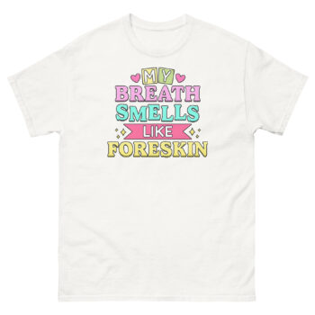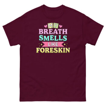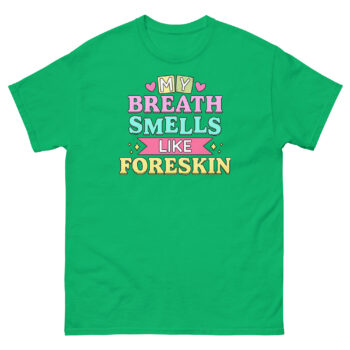 Ready to commit to the bit? Don’t just tell a joke, wear one that people won’t forget. Click ‘Add to Cart’ to secure your My Breath Smells Like Foreskin T Shirt today. It’s more than apparel; it’s a social tool for the bravest humor enthusiasts. Get yours now and become the most talked-about person in the room.