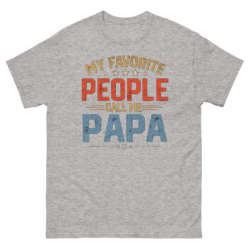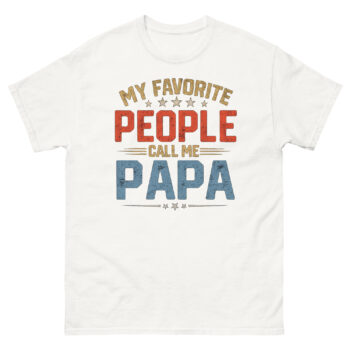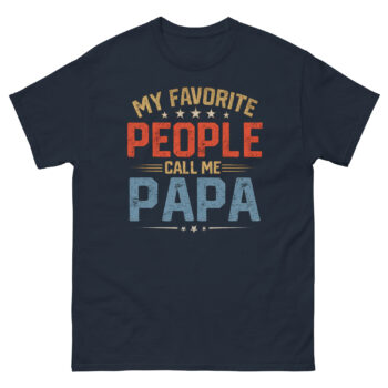 My Favorite People Call Me Papa Shirt is a classic cotton t-shirt featuring a unique vintage design for proud grandfathers. What sets it apart is its weathered, retro aesthetic that feels broken-in from day one, celebrating family legacy with style. It’s designed specifically for Papas, Grandads, and Patriarchs who want to wear their favorite title with a sense of timeless pride.