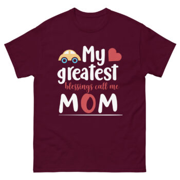 This “My Greatest Blessings Call Me Mom” t-shirt features a charming design with bold, playful typography and a heart symbol for extra love. It’s the perfect sentimental shirt for moms who cherish their children as their greatest gift.