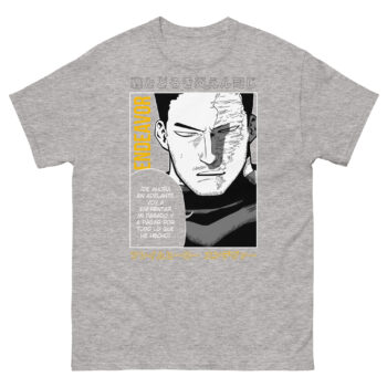 The Emotional Core: Perhaps the most powerful element is the Spanish speech bubble: “¡DE AHORA EN ADELANTE VOY A ENFRENTAR MI PASADO…!” (“From now on, I will face my past and pay for everything I’ve done!”). This makes the shirt more than a graphic, it becomes a confession. It’s a key reason this piece is sought after as one of the most meaningful camisetas de anime en español.
