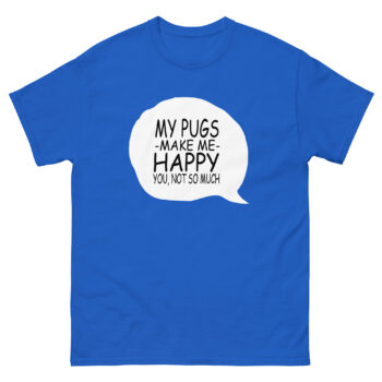 Why blend in when you can stand out? Grab this “My Pugs Make Me Happy” shirt today and let the world know where your priorities lie. (Hint: It’s with your pug.)