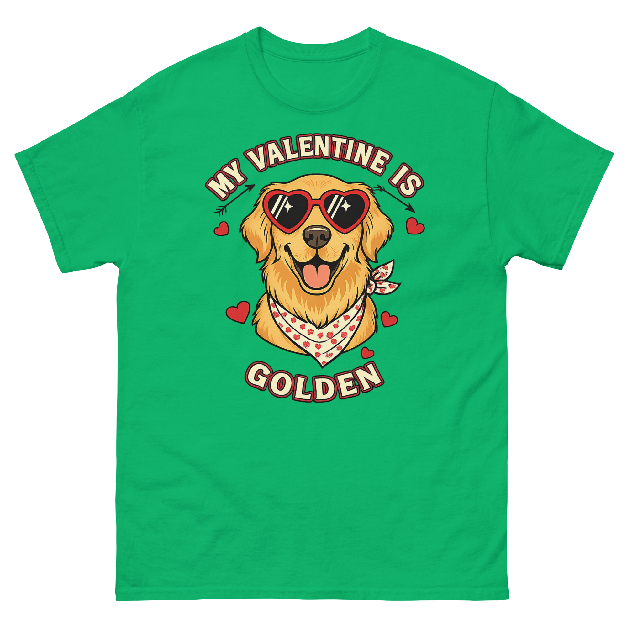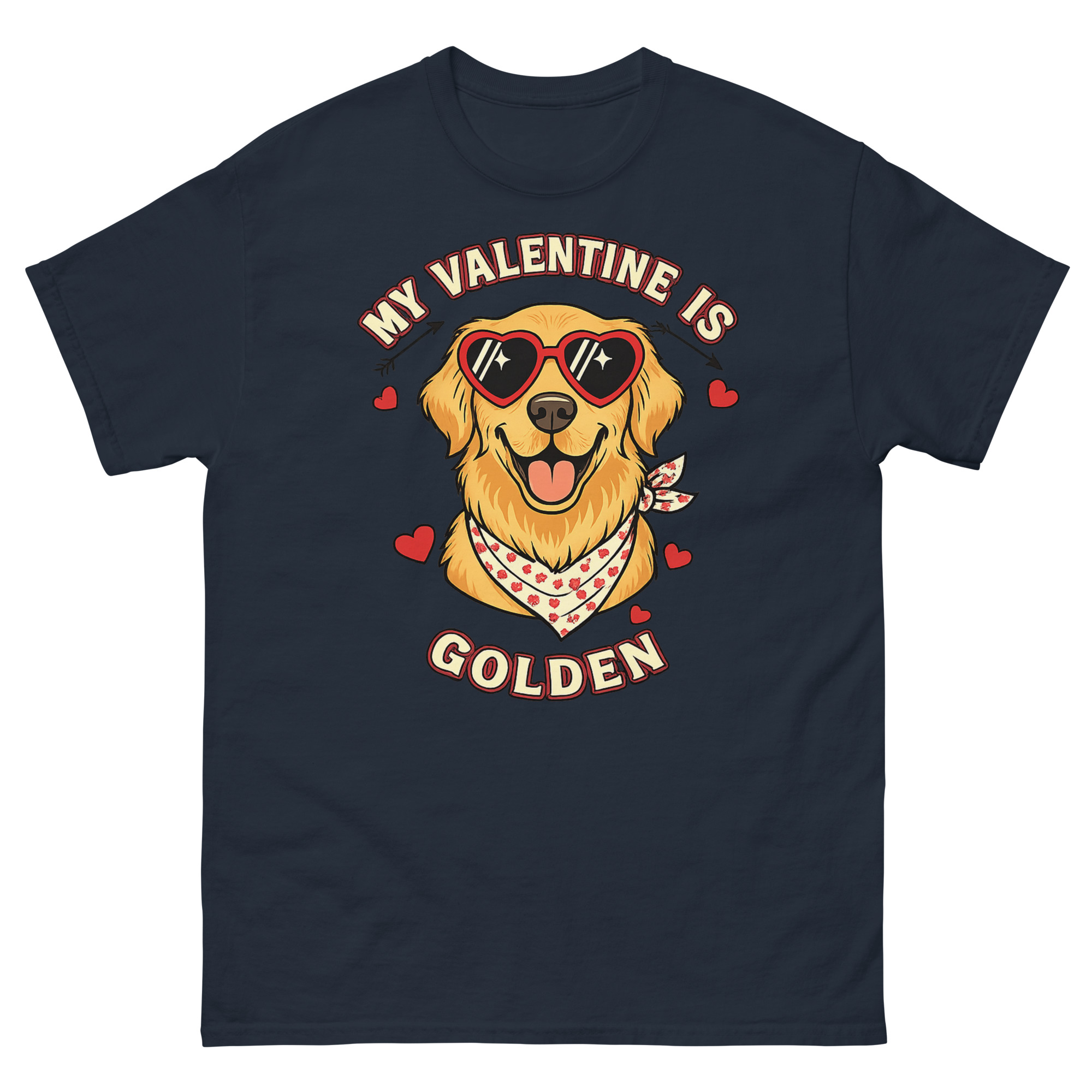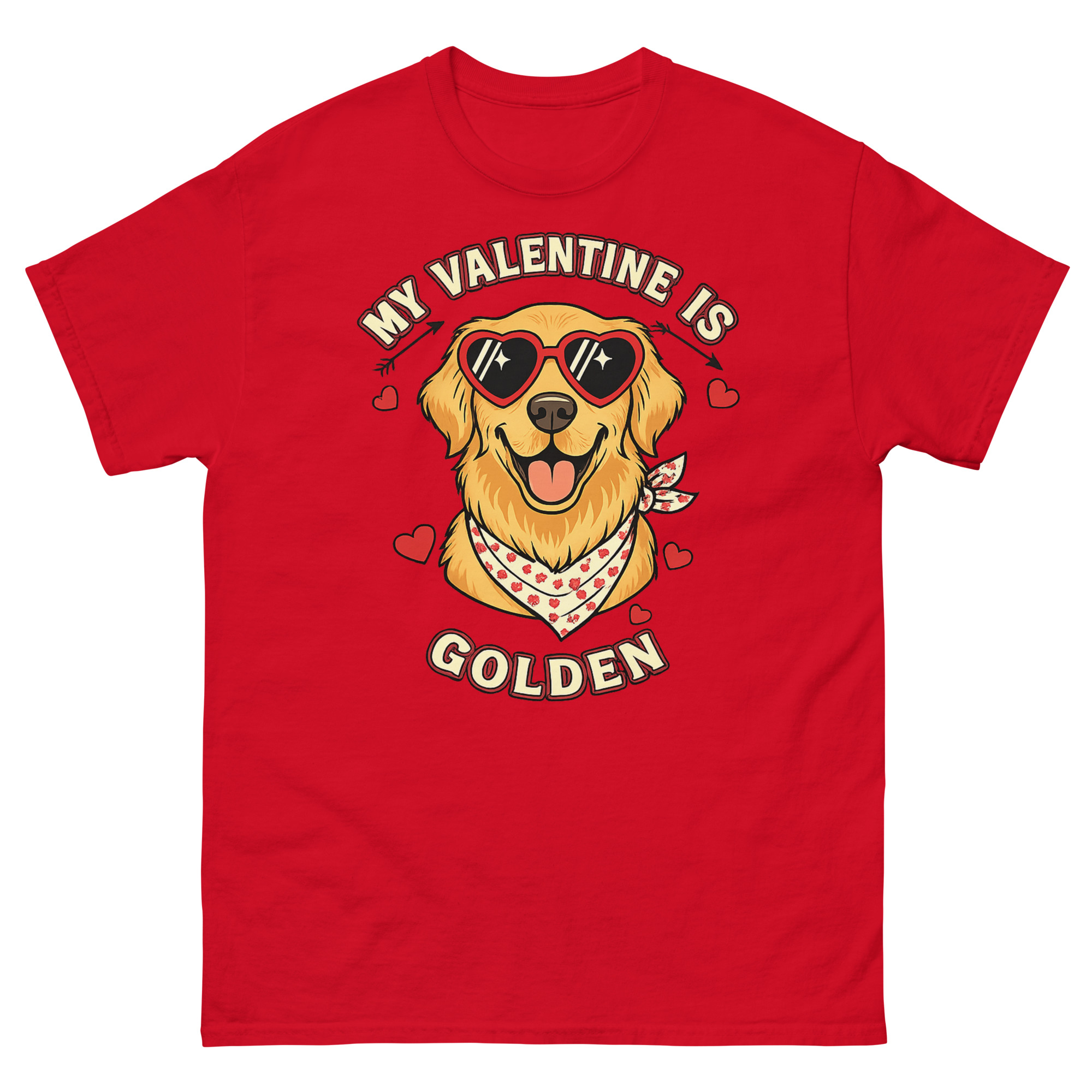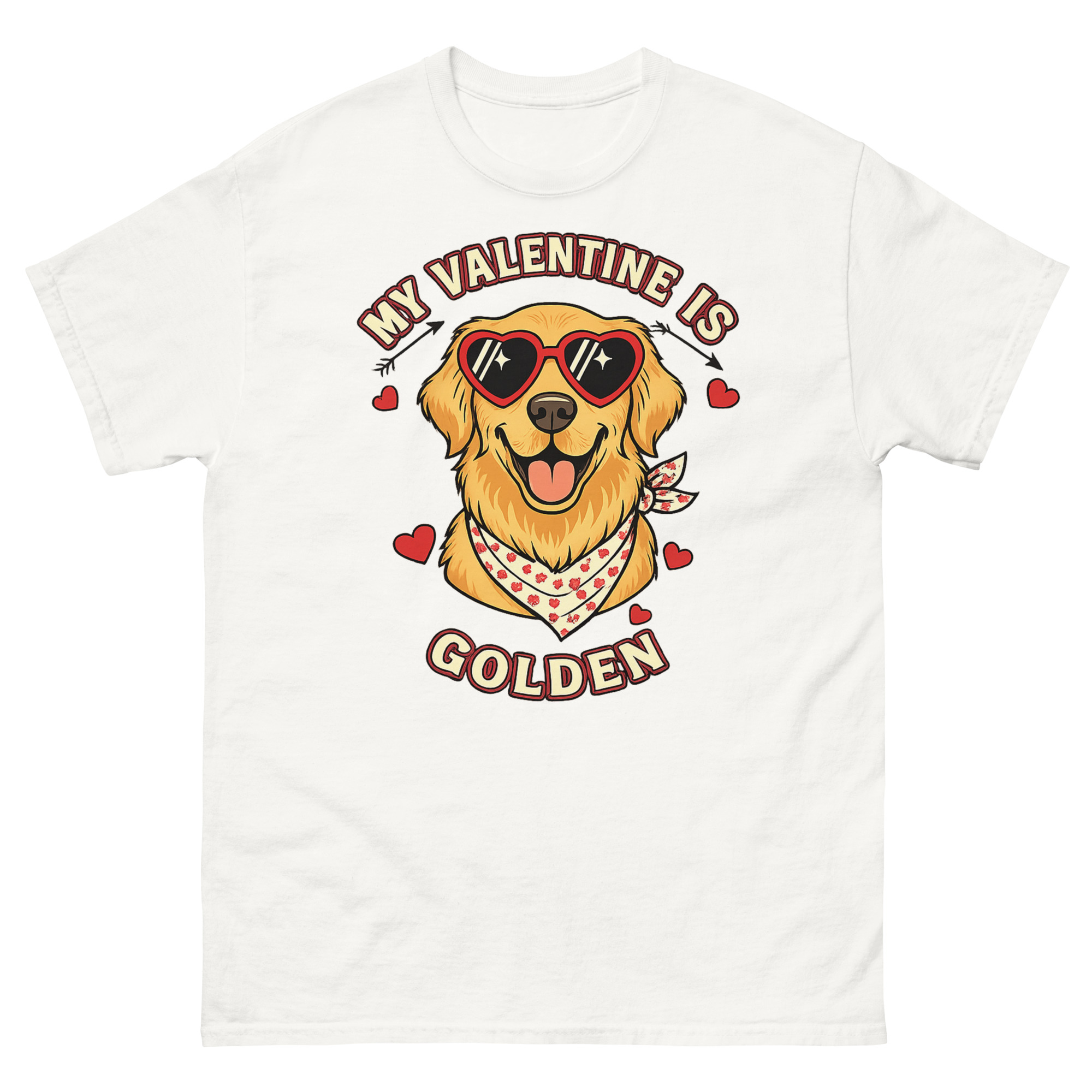 My Valentine is Golden T Shirt – Golden Retriever Valentine’s Tee