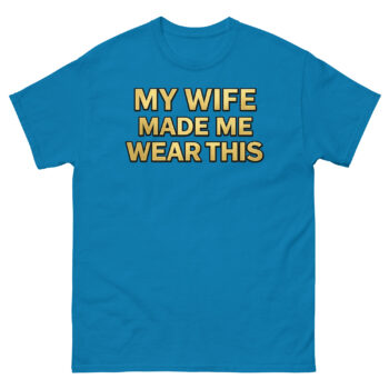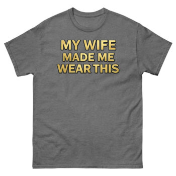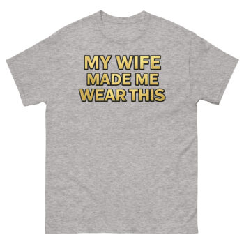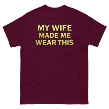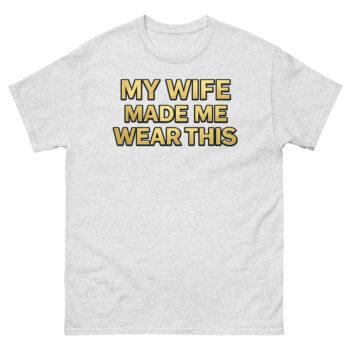 Stop searching for the perfect marriage humor t-shirt that doesn’t sacrifice style. This shirt strikes the ideal balance between a great joke and great looks. My Wife Made Me Wear This Shirt the ultimate icebreaker, a nod to married life, and a genuinely comfortable tee.