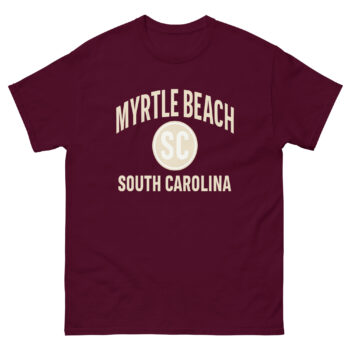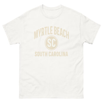 Celebrate your love for South Carolina’s most iconic beach town with this Myrtle Beach South Carolina T Shirt. Featuring bold typography and a central SC emblem, this design captures the timeless coastal souvenir style. Perfect for tourists, surfers, or anyone who loves Myrtle Beach, this tee works great as both a travel keepsake and a casual everyday outfit.