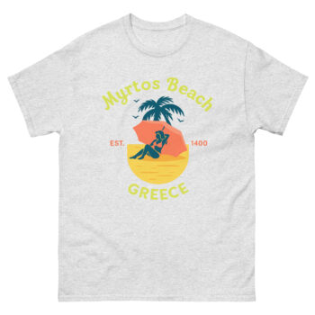 Bring home the spirit of the Greek islands with this Myrtos Beach Greece Shirt. Featuring a bold retro beach design with palm trees, sunset colors, and relaxing vibes, this tee is perfect for travelers, beach lovers, and anyone who has visited or dreams of visiting Kefalonia’s iconic Myrtos Beach.