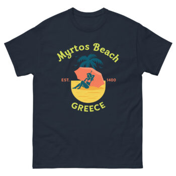 The Returned Traveler: For anyone who has stood on that stunning cliffside viewpoint, it’s a cherished Myrtos Beach tourist shirt that sparks stories and nostalgia.