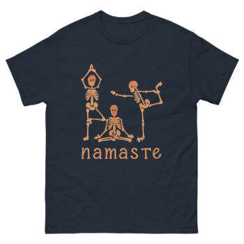 Click ‘Add to Cart’ now and secure the funniest, most mindful tee in your collection. Your new favorite namaste skeleton yoga shirt is waiting for you!
