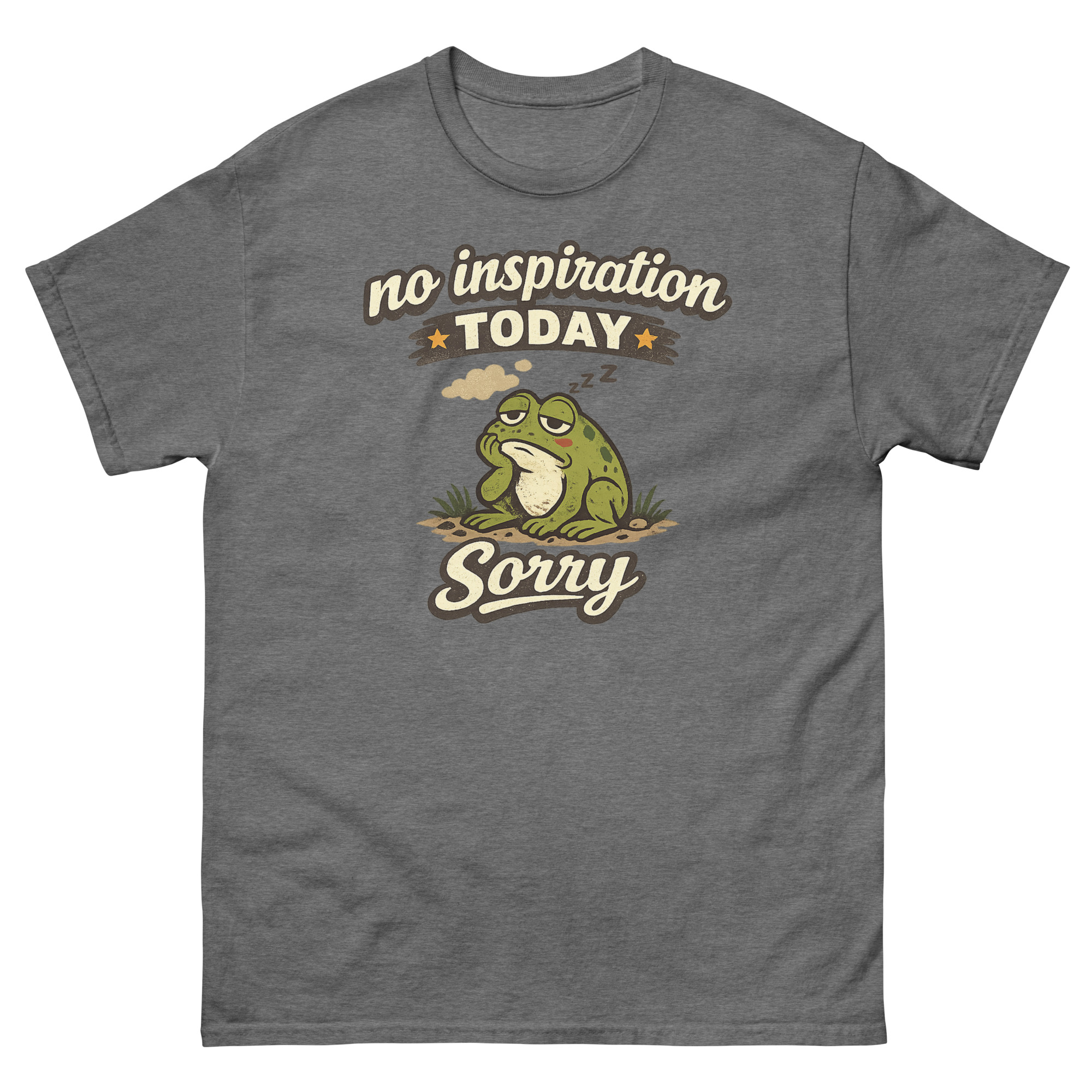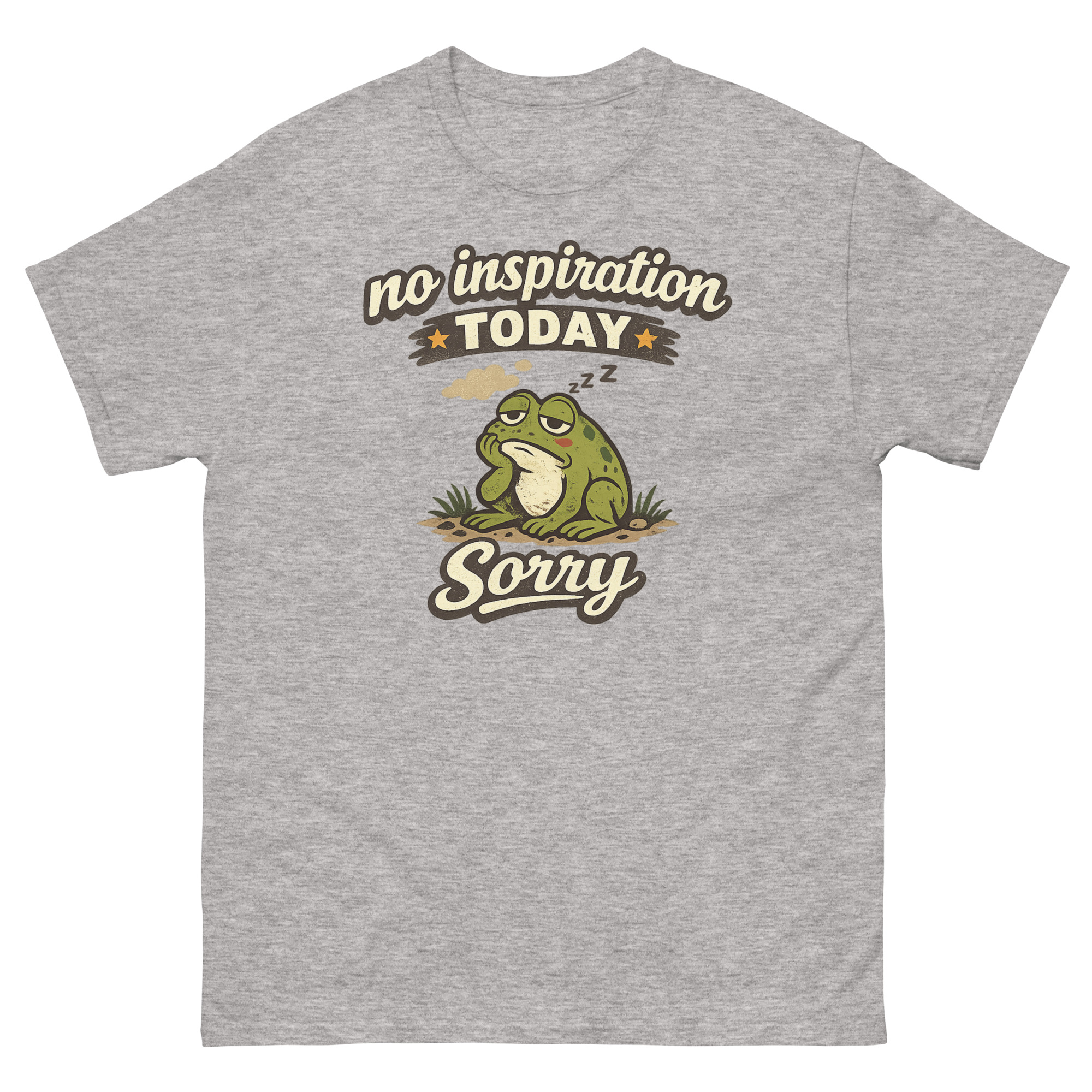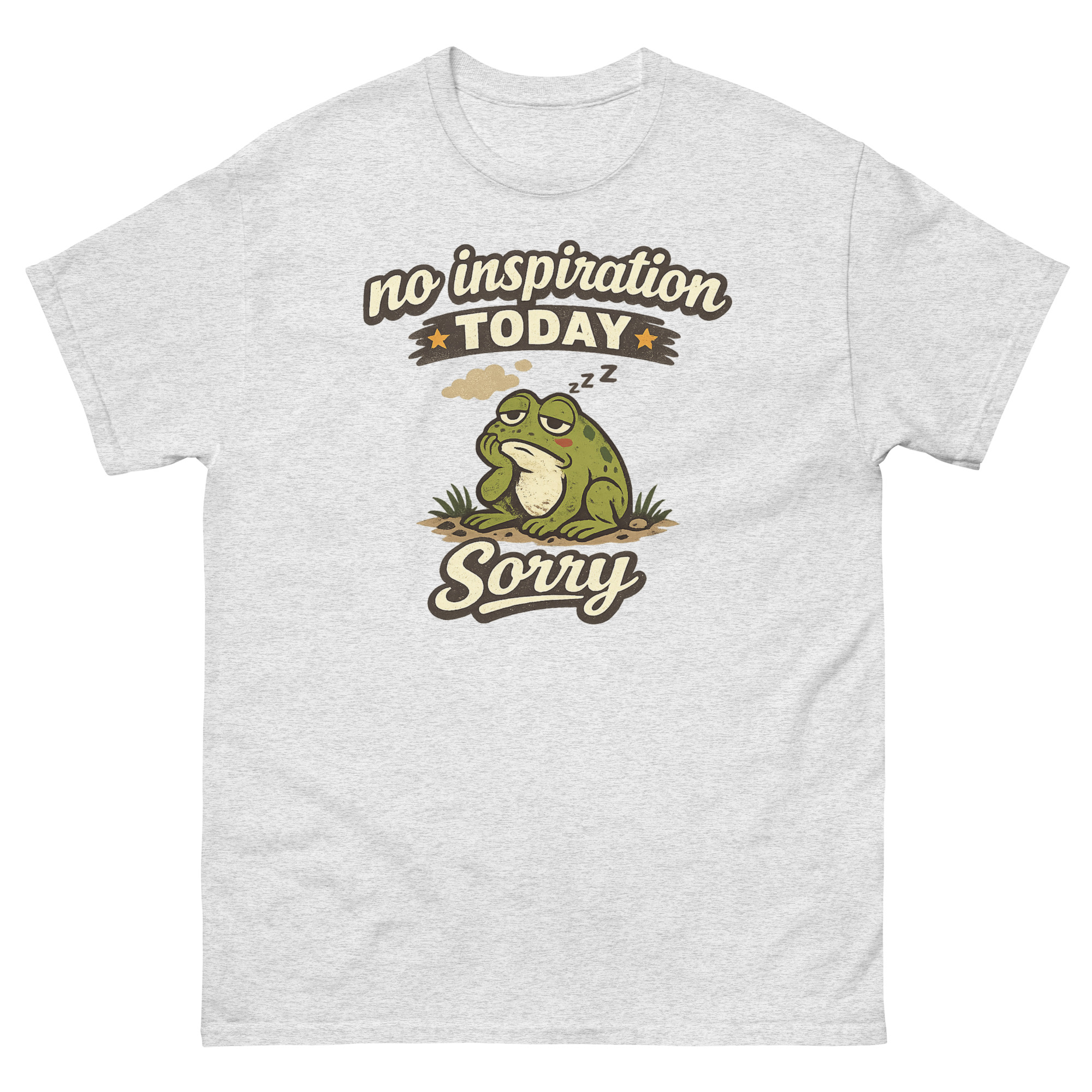 Sometimes, you just don’t have it. The words won’t come, the ideas are stale, and your best move is to simply be. That’s the entire idea behind this design. We started with the concept of an “Authorized Break” and landed on a chubby, dozing frog as the perfect mascot. After all, frogs are experts at sitting still. Consequently, No Inspiration Today Sorry Shirt isn’t just a random cartoon; it’s a specific mood.