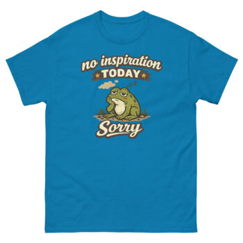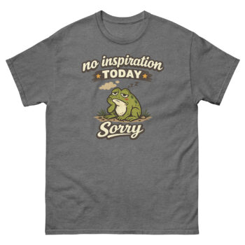 Meet the No Inspiration Today Sorry Shirt, the comfortable cotton tee that communicates your need for a creative break with a dose of humor. Its unique design features a charming, sleepy frog and vintage typography, perfect for anyone who values cozy comfort and a break from constant productivity. This shirt is designed for writers, creatives, introverts, and anyone who has ever needed a visual “day off.”