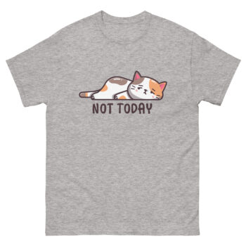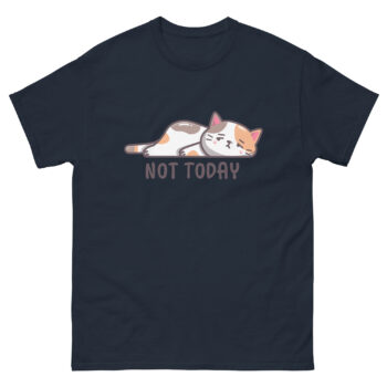 Featuring an irresistibly kawaii cat graphic tee design, this shirt showcases a snoozing feline with the perfect caption: “Not Today.” Whether you’re embracing your inner introvert cat apparel vibe or just need a tired cat funny t-shirt to match your mood, this tee has you covered—literally.