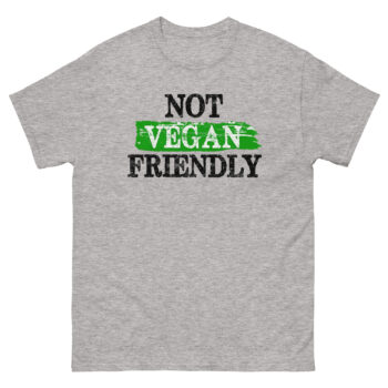Stand out with this bold Not Vegan Friendly T-Shirt. Perfect for BBQ lovers, meat eaters, and anyone with a sarcastic sense of humor. This shirt makes a statement at cookouts, restaurants, or casual hangouts.