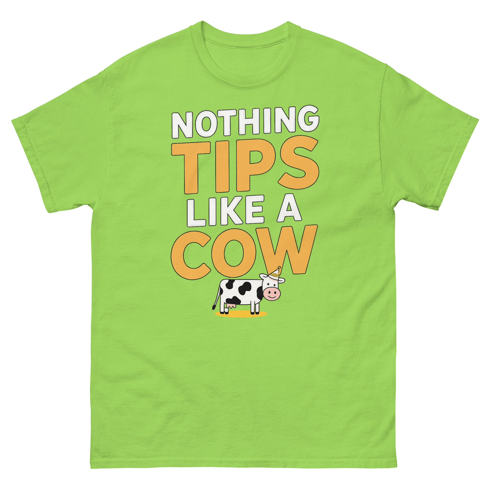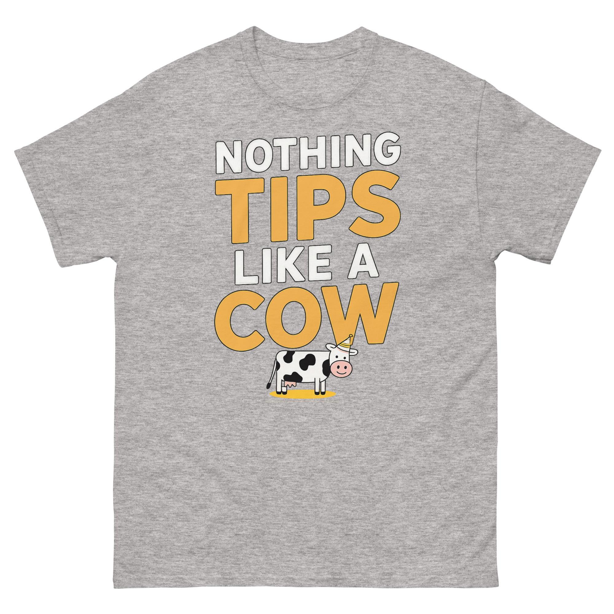 Don’t just hear the legend, wear it. The Nothing Tips Like a Cow Shirt is your ticket to showcasing legendary humor and top-notch quality. It’s the ultimate gift for the dairy farmer, the life of the bachelor party, or your own favorite casual wardrobe addition.