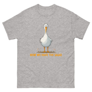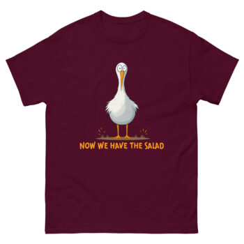 If you’re looking for a quirky gift tee for meme lovers or a witty t shirt for animal enthusiasts, the “Now We Have the Salad” T-Shirt is your perfect match. It’s bold, bizarre, and beautifully printed.