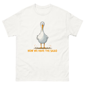 The Now We Have the Salad T Shirt is for anyone who loves humor, memes, and quirky statements that make people do a double-take. Featuring a funny cartoon bird and the phrase “Now We Have the Salad,” this shirt blends absurd humor with a clean, minimal design that’s instantly eye-catching.