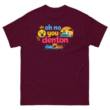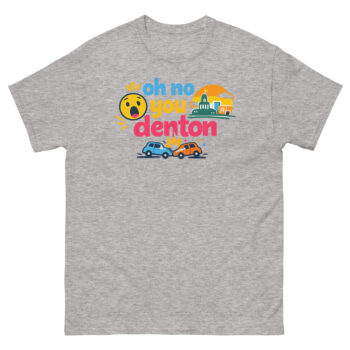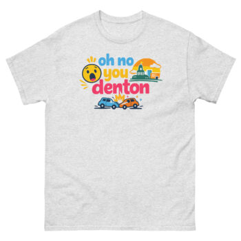 The oh no you denton shirt is more than just fabric and ink, it’s a wearable inside joke. Inspired by the chaotic charm of Denton traffic and the unforgettable vibe around the Denton Square, this tee captures local humor in a way that resonates with both UNT and TWU students as well as longtime residents. If you’ve ever braved the confusing turns near the courthouse or laughed at a friend’s fender bender story, this design feels like it was made for you.