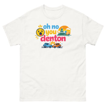 Don’t just survive Denton traffic, celebrate it. Grab your oh no you denton shirt today and wear your hometown humor with pride.