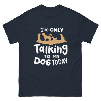 Let’s be real—some days, the only good conversation is the one you have with your dog. If you’re the type who prefers wagging tails over awkward chit-chat, the “Only Talking to My Dog Today” T-Shirt was made for you. This isn’t just another pet lover humor shirt—it’s a hilarious yet relatable statement for dog people introverts who’d rather snuggle their pup than suffer through forced socializing.