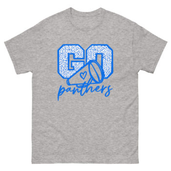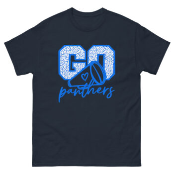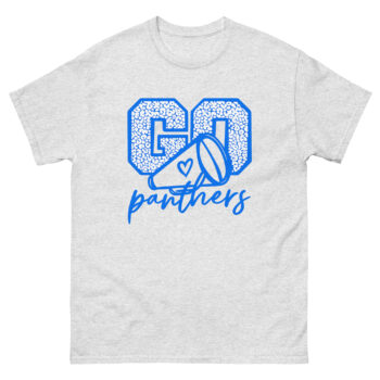 Get ready to cheer louder and shine brighter with the Go Panthers Cheer Shirt! Designed with a bold blue megaphone and heart graphic, this tee captures the excitement of game day, pep rallies, and cheer events. Whether you’re a cheerleader, cheer mom, or proud fan, this shirt celebrates your Panther pride with energetic style and team spirit.