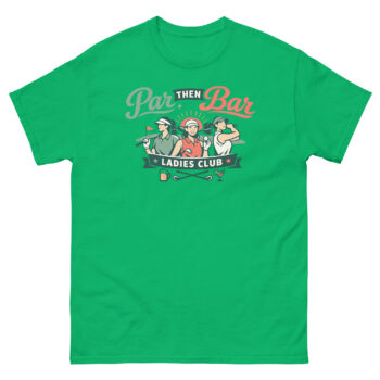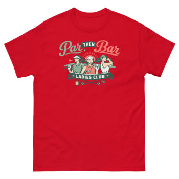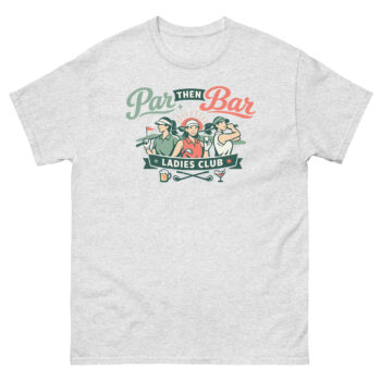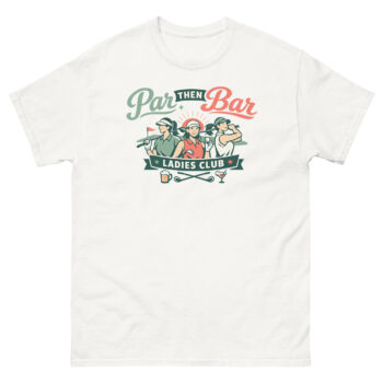 Ready to tee up some fun with your golf crew? The Par Then Bar Ladies Club Golf T Shirt is the ultimate piece of golf clubhouse lifestyle gear. This retro graphic tee is perfect for post-round drinks, ladies golf weekend trips, or just showing off your club pride. It makes a fantastic gift for the social golfer in your life. Don’t wait to celebrate the best part of the game, click ‘Add to Cart’ now to get your official ladies club top delivered quickly.
