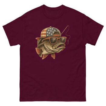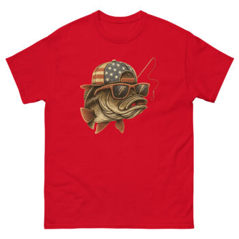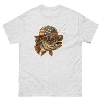 What’s better than fishing? Fishing with pride—and this bass fishing patriotic t-shirt delivers both in spades. Featuring a hilarious, vintage-style largemouth bass rocking stars-and-stripes sunglasses and a hat, this patriotic fishing shirt is perfect for anglers who love their country as much as they love the chase.