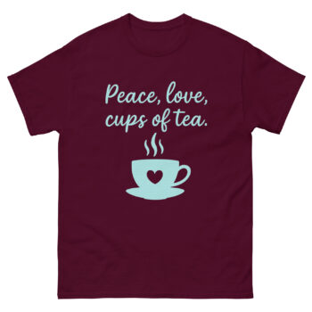 This peace love cups of tea shirt for tea lovers is more than apparel—it’s a philosophy woven into cotton.