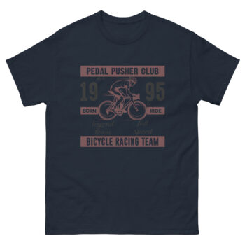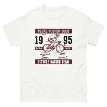 Relive the golden days of cycling with this “Pedal Pusher Club – 1995 Bicycle Racing Team” shirt. Featuring a retro-style cyclist graphic and bold vintage typography, this design is perfect for cycling club members, road bike racers, and retro sportswear fans.