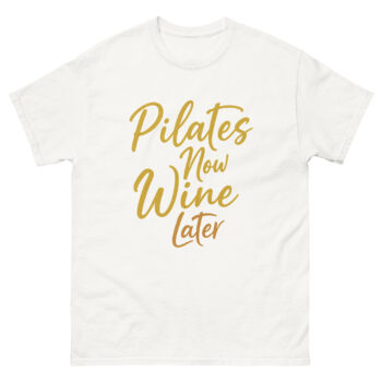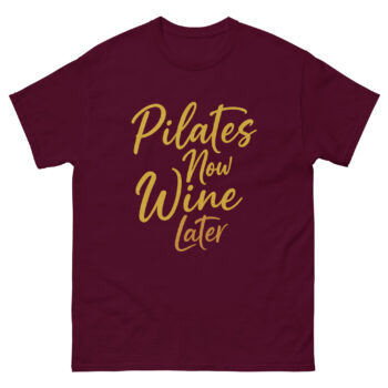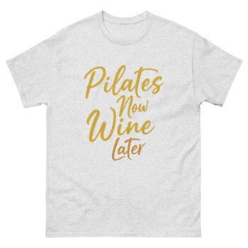 Don’t just wear a shirt—wear an attitude. Click below to grab your Pilates Now Wine Later T-Shirt for Pilates enthusiasts and wine lovers today!