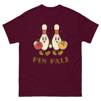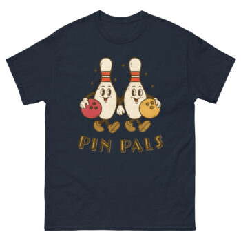 The Pin Pals Bowling Shirt is a retro-inspired graphic tee featuring two cheerful bowling pins holding colorful balls. Designed for fun-loving bowlers, this nostalgic shirt celebrates friendship, team spirit, and classic alley vibes. Cool for bowling leagues, game nights, or casual hangouts with your “pin pals.”