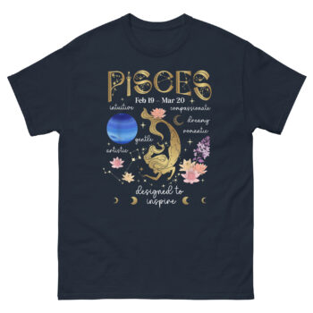 Ready to wear the full picture? Grab the Pisces Facts T Shirt today. It works as a detailed guide to the intuitive, compassionate, dreamy nature of Feb 19 – Mar 20 birthdays. The celestial mermaid, planet Neptune imagery, and lotus flower accents set it apart from basic zodiac merch. Click your size above and carry your soul map with you.