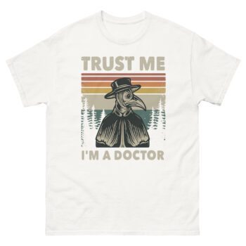 Looking for a funny historical t-shirt that turns heads and sparks laughs? The “Trust Me I’m a Doctor” plague doctor t shirt vintage style blends eerie charm with retro aesthetics, making it a standout piece for anyone who loves dark humor and historical satire. Whether you’re into gothic horror shirts, quirky medical lore, or just want something that makes people smile, this tee delivers with style and substance.