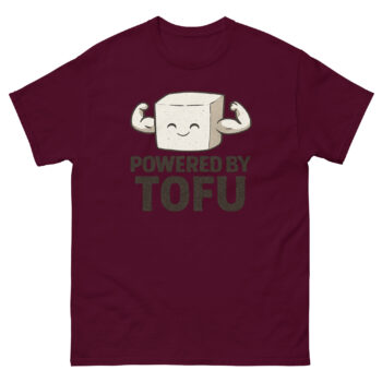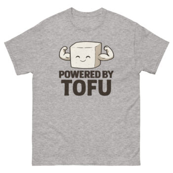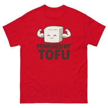 Show off your plant-powered strength with this Powered by Tofu T-Shirt. Featuring a fun cartoon tofu flexing its muscles, this vegan graphic tee is perfect for plant-based eaters, gym lovers, and anyone who enjoys cruelty-free humor. A must-have for vegans, vegetarians, and tofu fans everywhere.