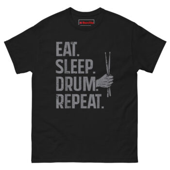 Eat Sleep Drum Repeat Shirt – Hand Holding Drumsticks Graphic Tee