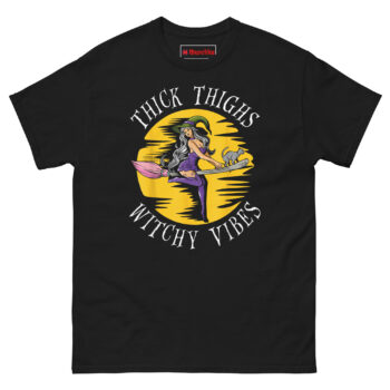 Thick Thighs Witchy Vibes Shirt – Vintage Pin-Up Witch Graphic Tee