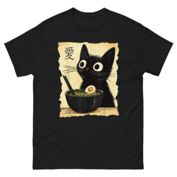 Cat Eating Ramen Noodles T Shirt – Black Cat Owners Gift Tee