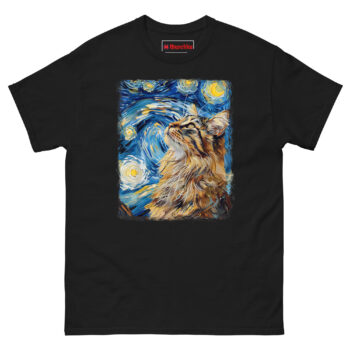Starry Night Maine Coon T Shirt – Van Gogh Art Graphic Tee