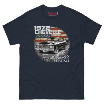 1972 Chevelle Shirt started in a dusty garage last summer. My neighbor had his ’72 Chevelle up on jack stands, rebuilding the engine for the third time. He wiped grease off his hands and said, “They don’t make them like this anymore. This car is an American legend.”