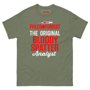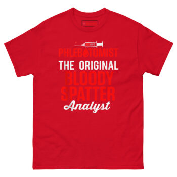 If you are the one actually handling the blood, this shirt is made for you. The Blood Spatter Analyst T Shirt combines premium comfort with a design that finally gives phlebotomists the credit they deserve. It stands out among funny medical professional gifts because it is clever, wearable, and rooted in real experience. Do not let the TV shows take all the glory. Add this shirt to your cart today and let everyone know who the original expert really is.