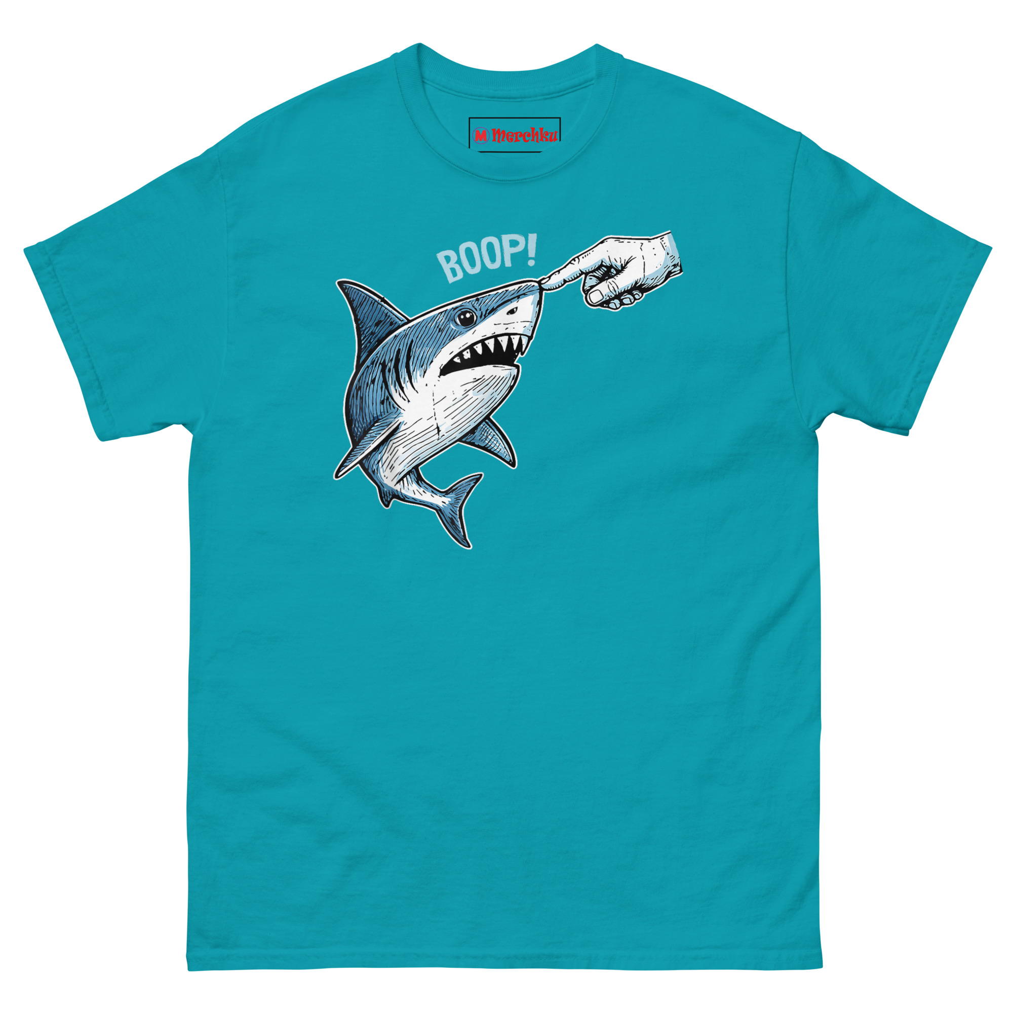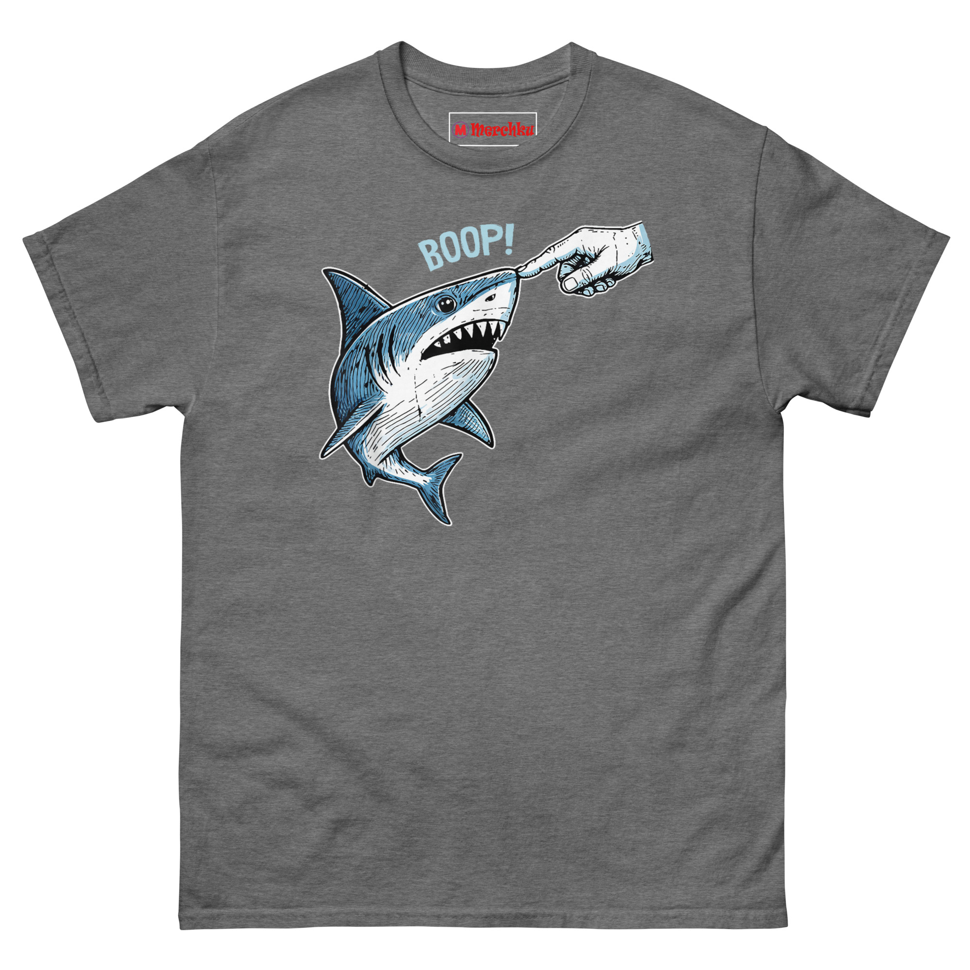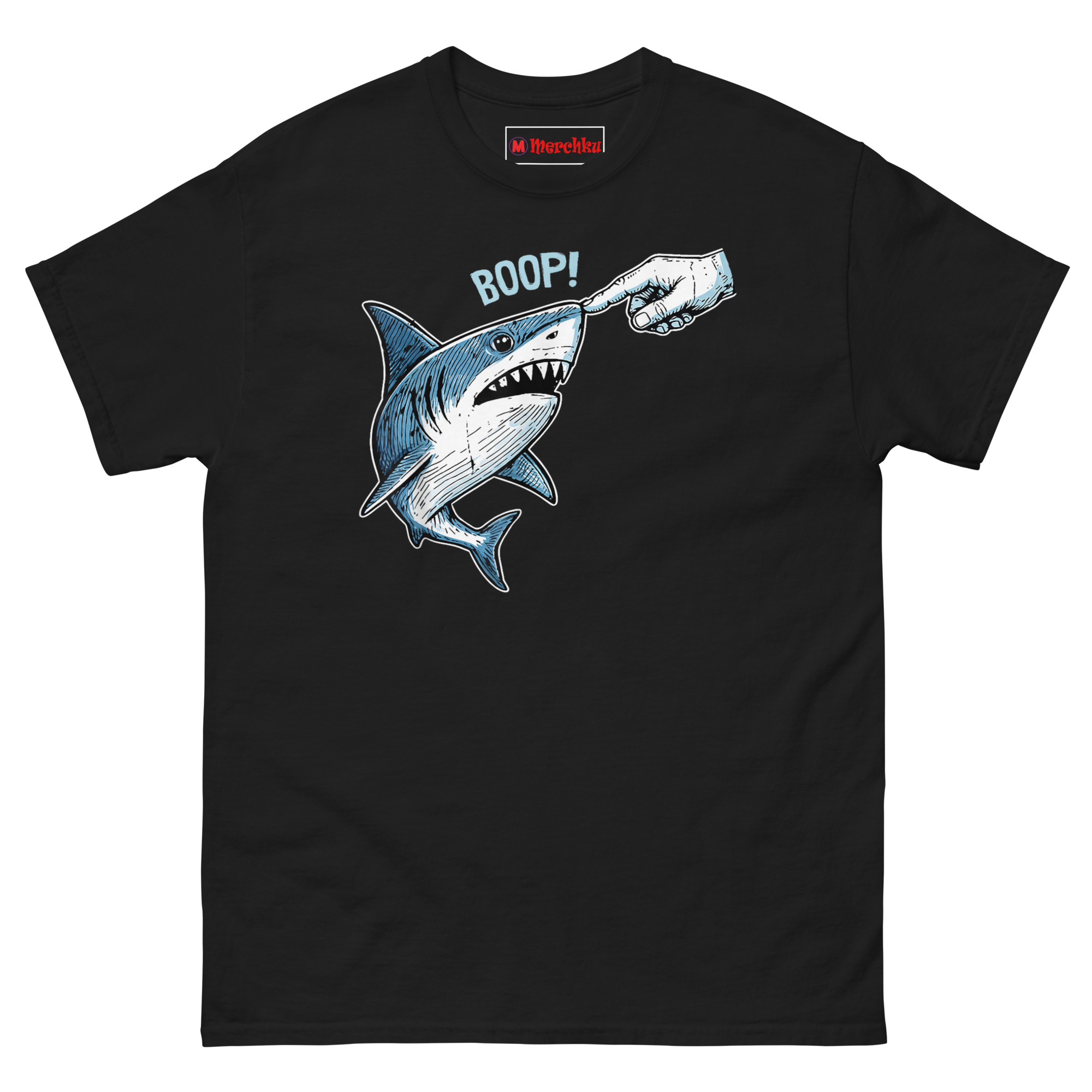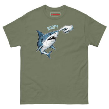 Most shark apparel goes for the scary angle jaws open, teeth ready. This Boop Shark Nose T Shirt design flips that script completely. The idea actually came from a marine biologist who mentioned that sharks are more curious than aggressive. She joked that if you could ever get close enough, a gentle “boop” on the nose would be the ultimate power move.