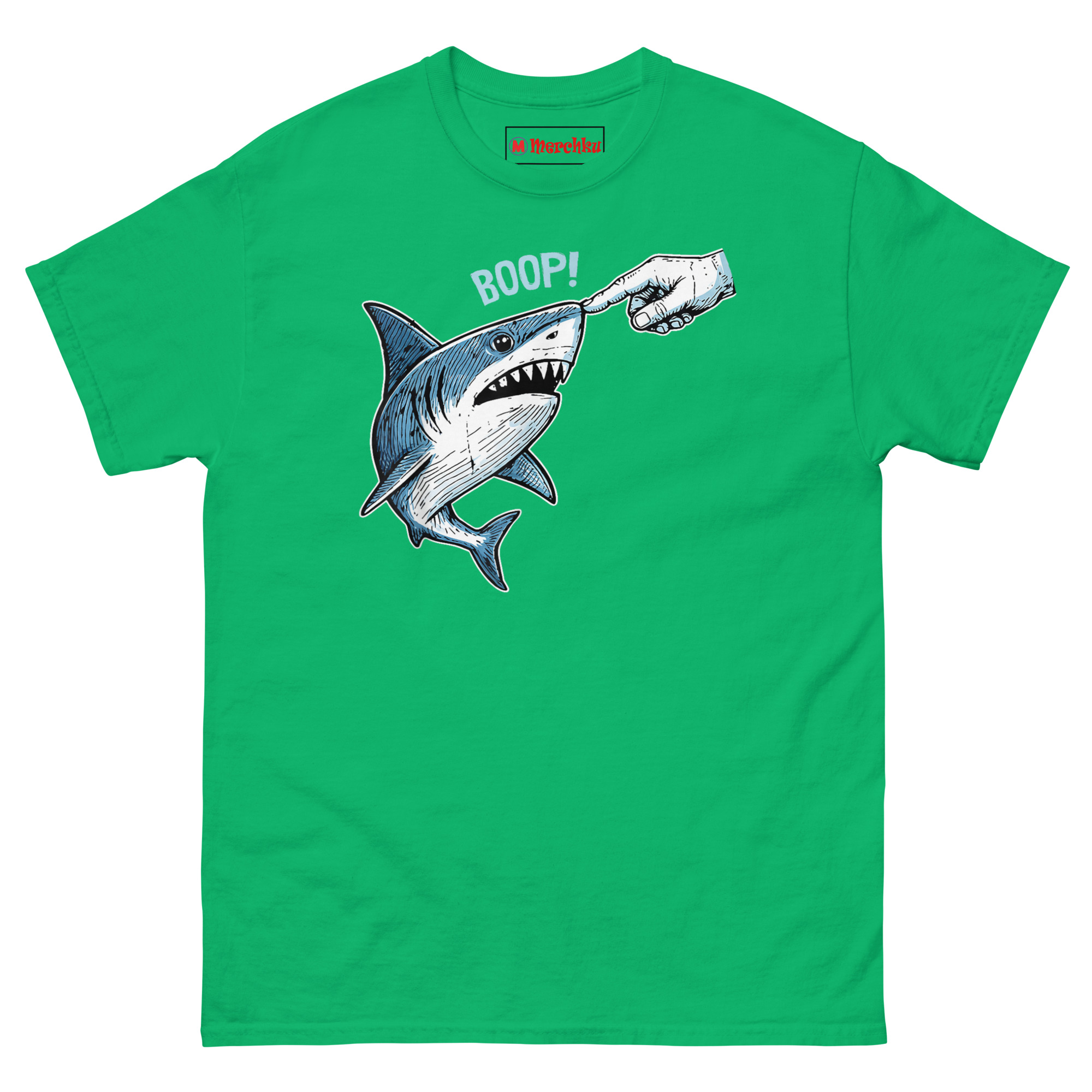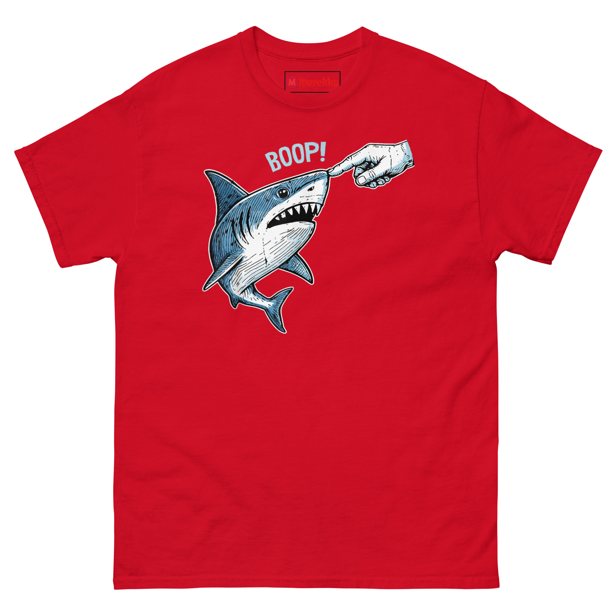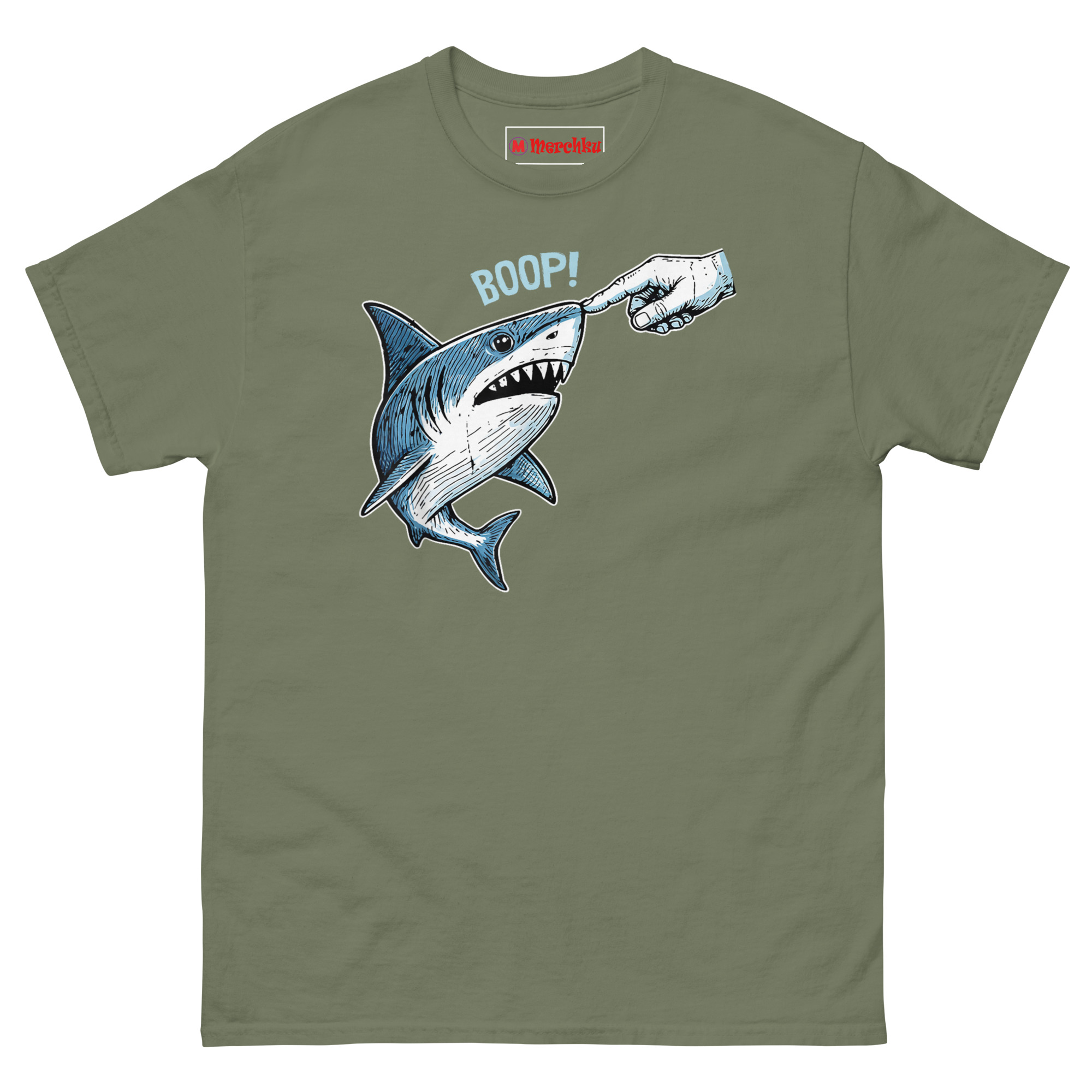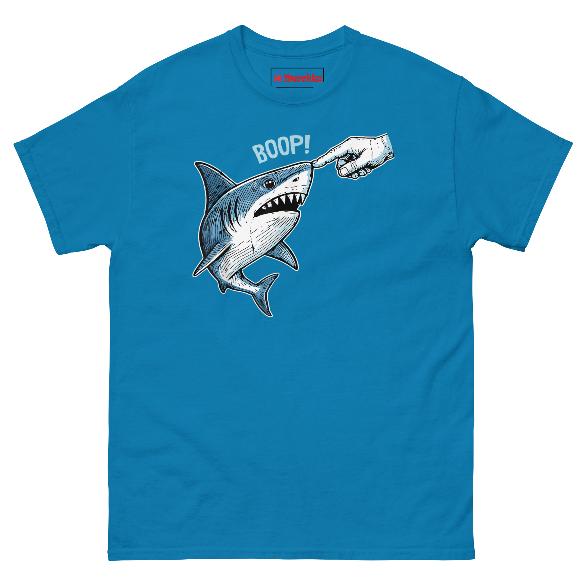 Most shark apparel goes for the scary angle jaws open, teeth ready. This Boop Shark Nose T Shirt design flips that script completely. The idea actually came from a marine biologist who mentioned that sharks are more curious than aggressive. She joked that if you could ever get close enough, a gentle “boop” on the nose would be the ultimate power move.