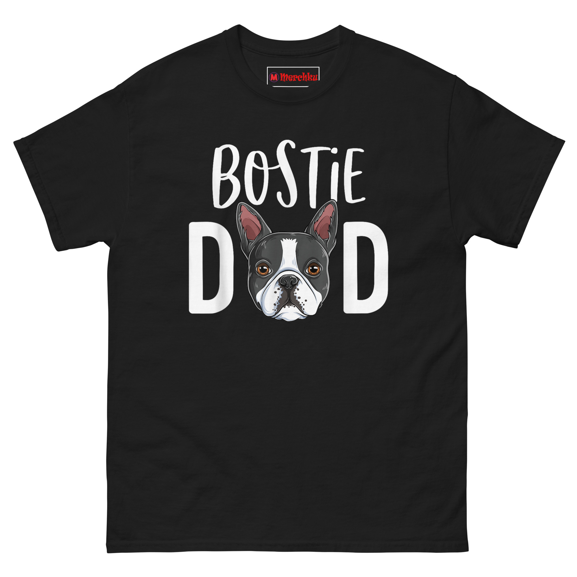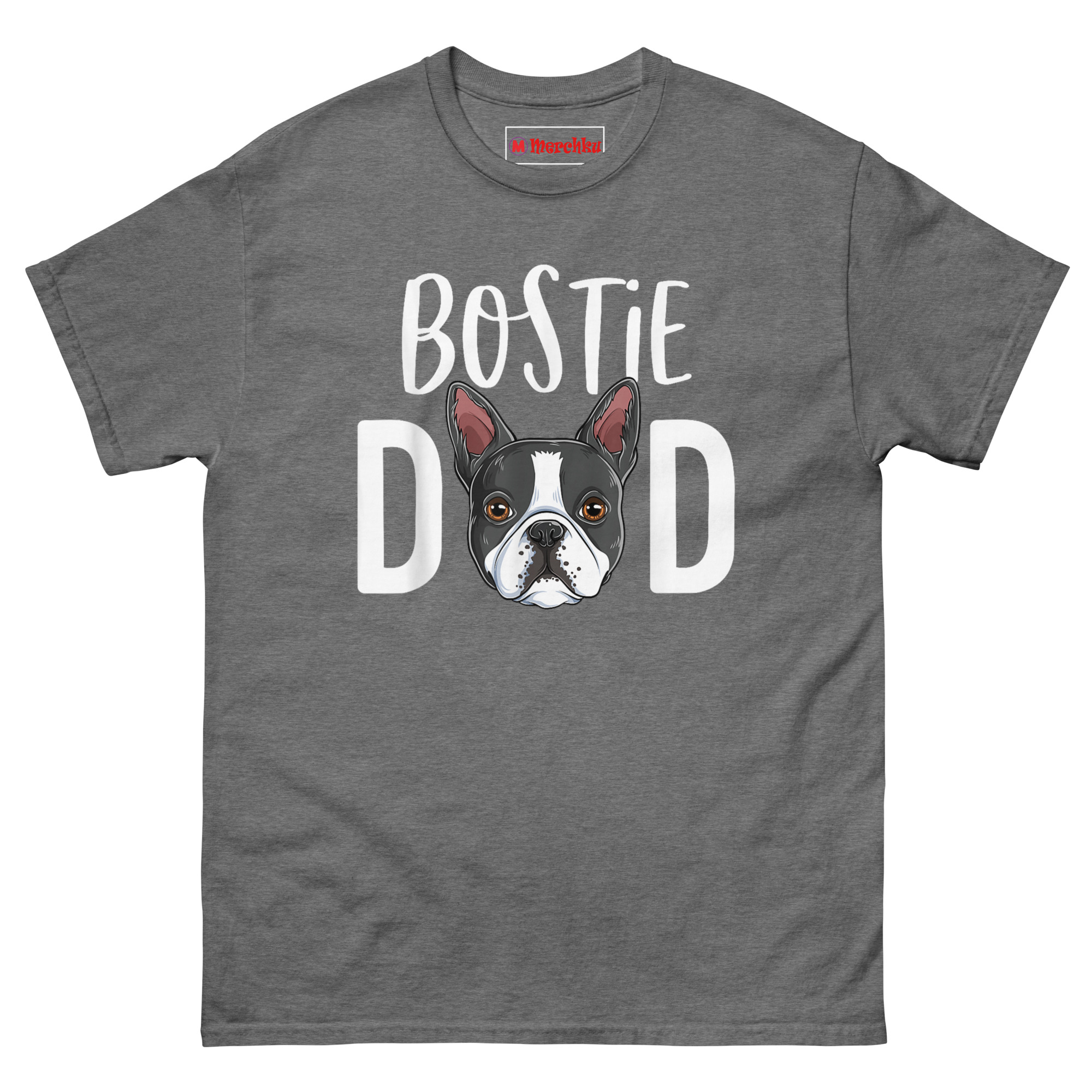 The Bostie Dad T Shirt is a classic short-sleeve crewneck crafted from 100% cotton, delivering a soft, breathable feel that holds up through countless walks and weekend errands. It serves as a Funny Gift For Boston Terrier Father Birthday Or For New Boston Terrier Puppy Dad, specifically made for men who proudly center their identity around their tuxedo-coated best friend. This bostie dad t shirt features a clever design where the dog’s portrait literally replaces a letter, offering a clean, modern look that fits right in at the dog park or a casual backyard barbecue.